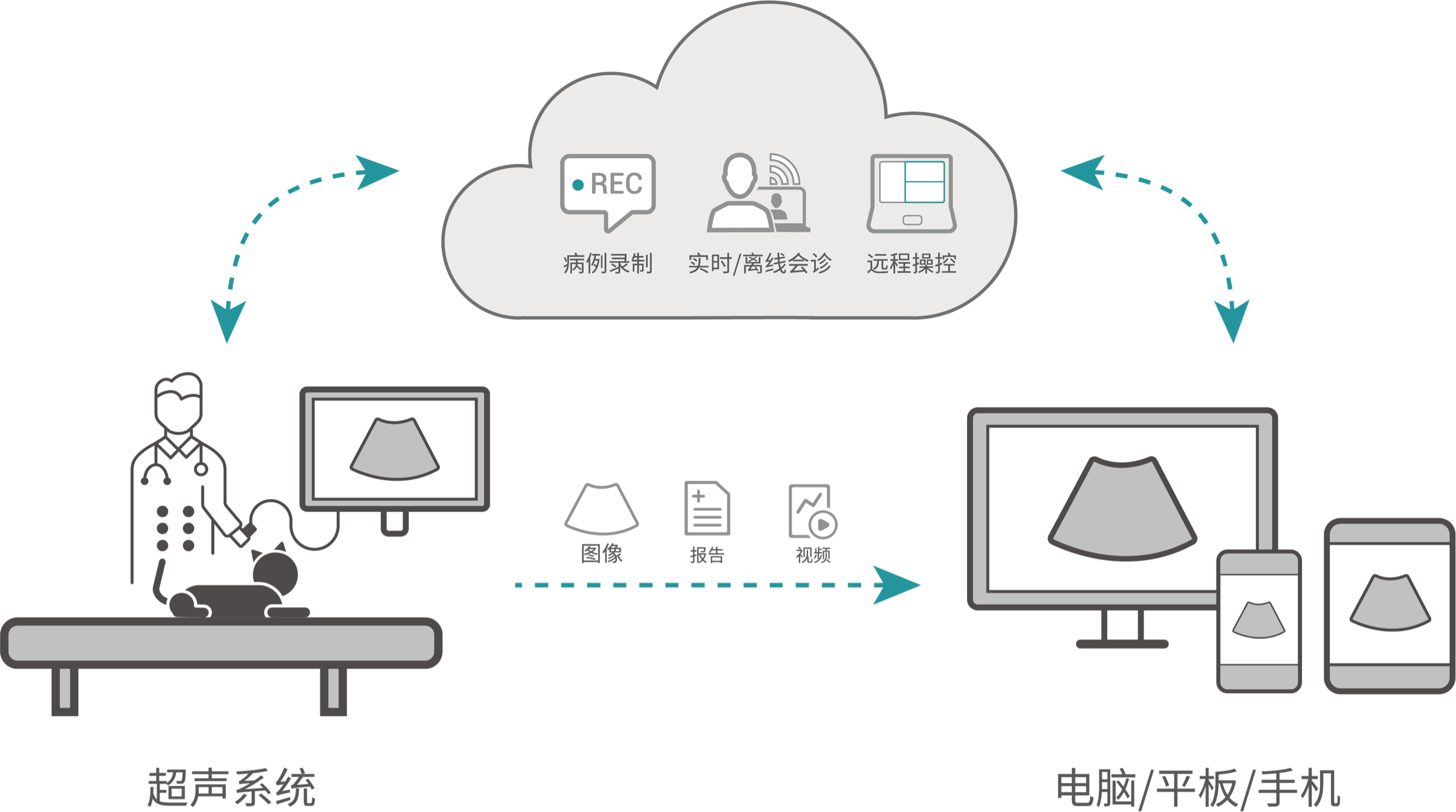 可实现PC端与超声机器的快速连接,将动物超声检查图像、视频或报告通过有线或无线快速传输。帮助简化动物医生工作流程,提升工作效率。