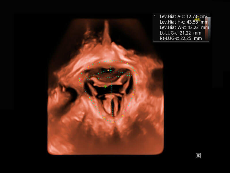 能够简化盆底检查的操作流程,可在二维模式及三维成像模式下实现一键自动提取出标准切面、自动识别当前切面、自动测量,提升盆底检查的高效性,同时也能让青年医生快捷的获得准确的检查结果。